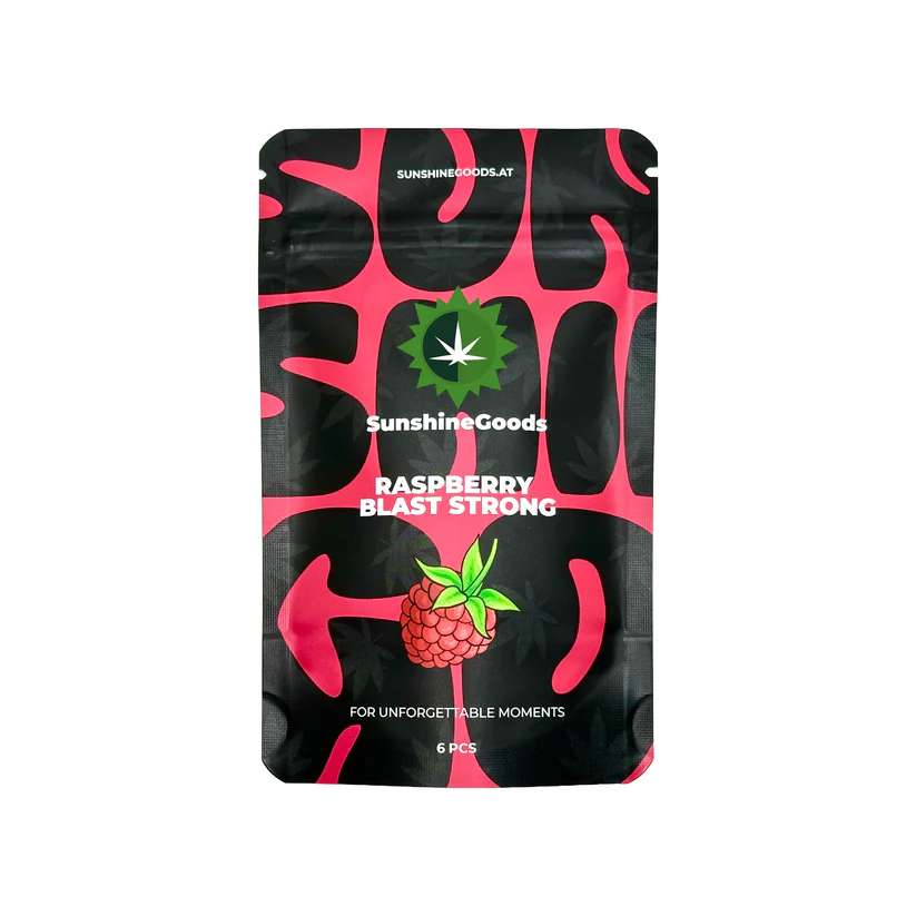 Raspberry Blast kombinieren einen beerigen Himbeer-Charakter mit spürbar intensiver Duftwirkung. Gefertigt aus natürlichen Zutaten wie Pektin, Zucker und ausgewählten Fruchtkonzentraten verströmen diese Pebbles einen frischen Himbeerduft, abgerundet durch eine dezente Hanfnote. Mit Aromen aus Stängeln und Blättern von Hanf (Δ9-THC < 0,2 %) sorgen sie für ein besonderes Dufterlebnis. Die STRONG-Rezeptur steht dabei für extra kräftige Raumwirkung – perfekt für Duft-Highlights oder Sammler mit Sinn für das Ausgefallene.
